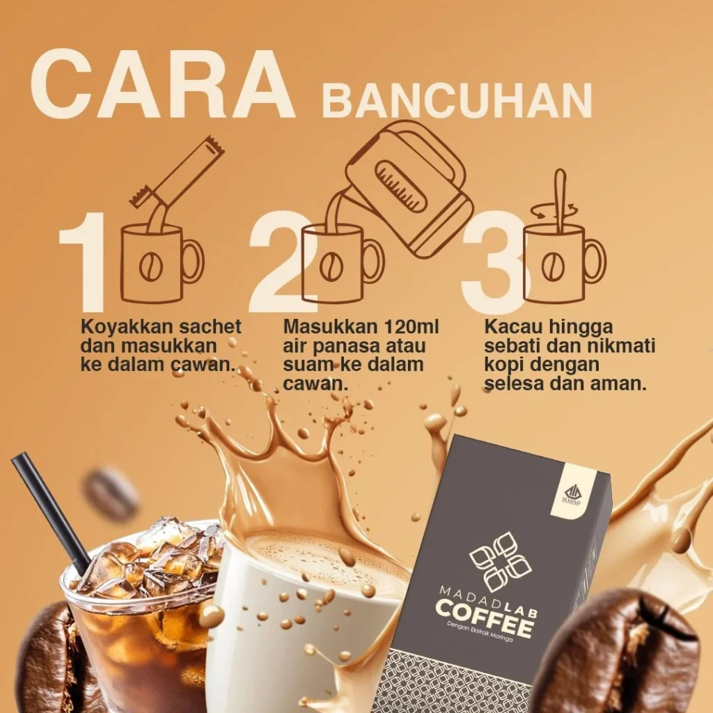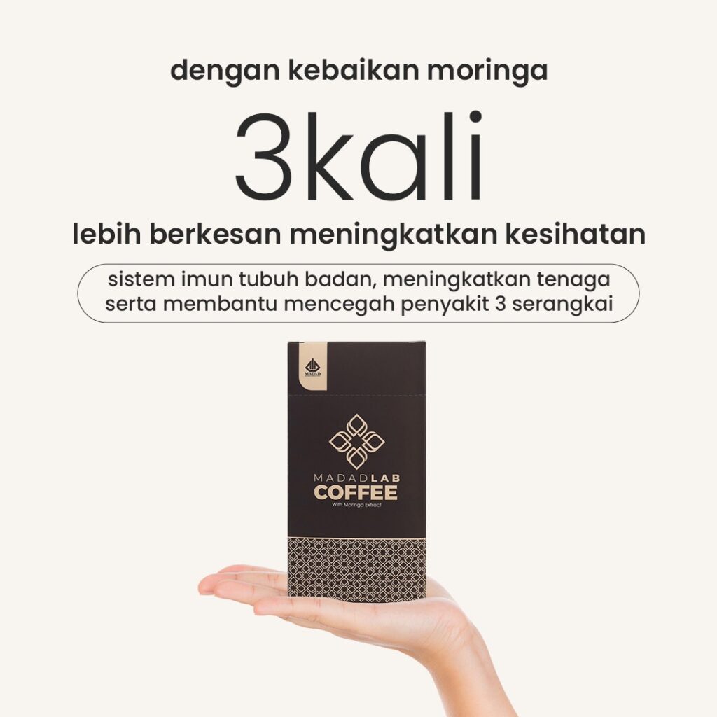 MADADLAB COFFEE menggabungkan kebaikan kopi yang memberikan rasa lazat dan juga manfaat kesihatan dari ekstrak daun Moringa yang kaya dengan nutrien.